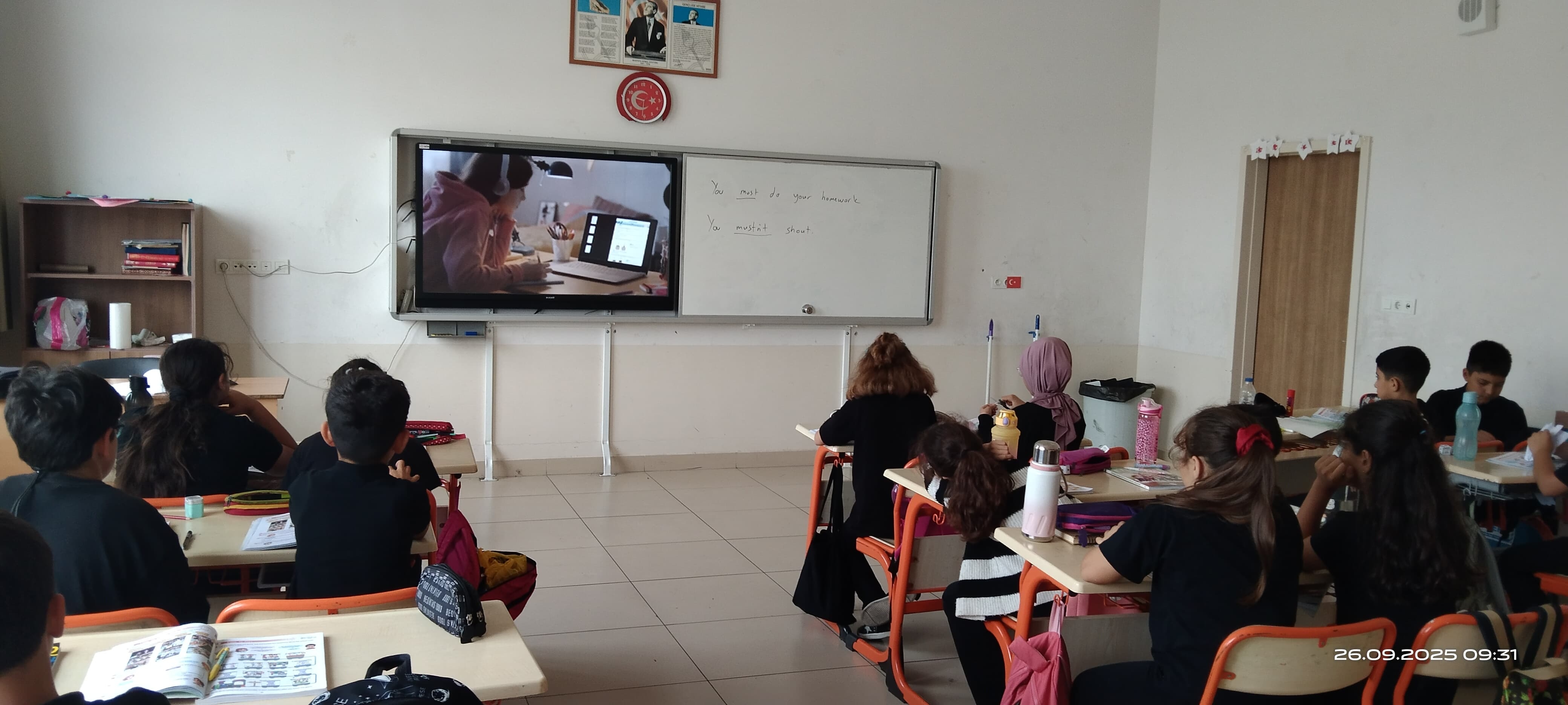 26 Eylül 2025 Cuma günü ikinci ders saatinde tüm ortaokullarımızda MEBİ tanıtım videoları izletilerek, okullarda tanıtım görselleri görünür alanlara yerleştirildi.